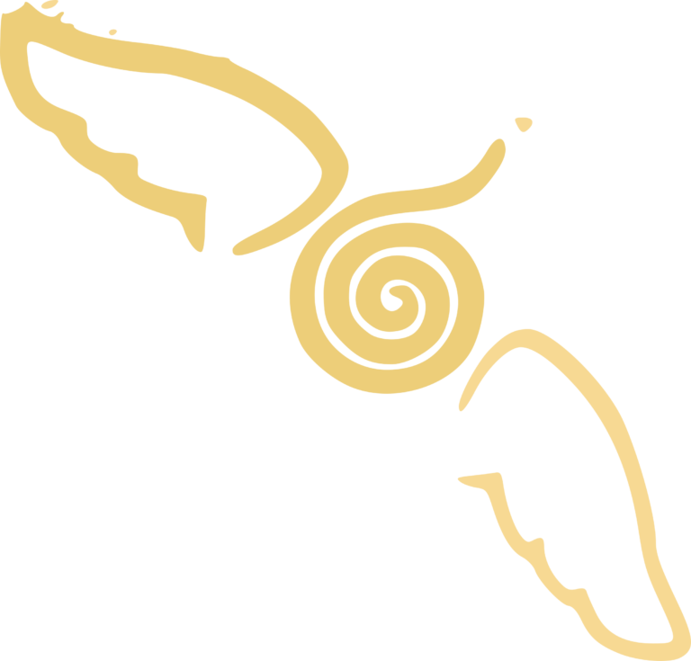 Due ali spiegate con al centro una spirale in procinto di spiccare il volo.